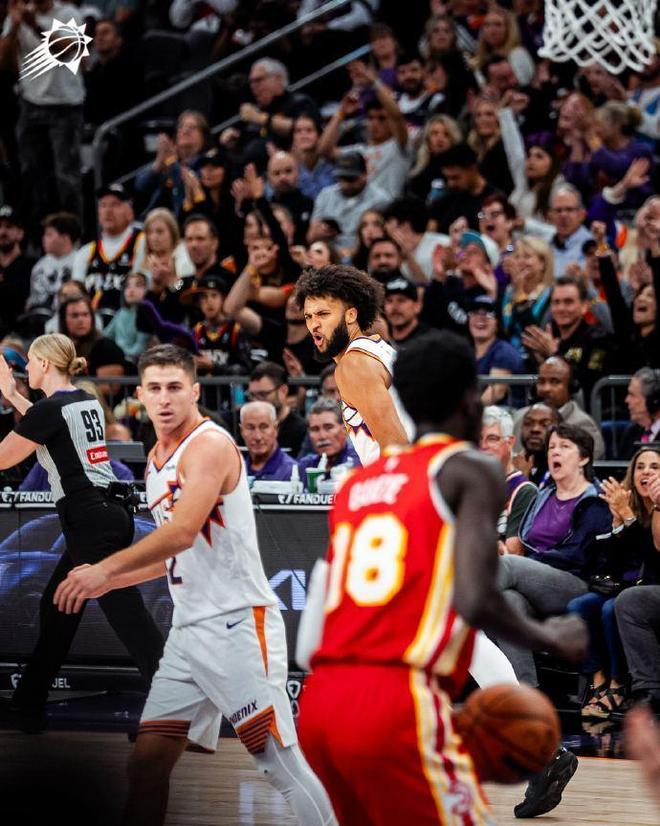 中场休息回来,太阳保持旺盛的进攻火力,他们连续两节单节狂轰37分,且限制老鹰第三节哑火仅得到20分。太阳第三节疯狂打出37-20净胜17分攻势,前三节比赛结束,太阳已经扩大95-77领先老鹰18分优势。