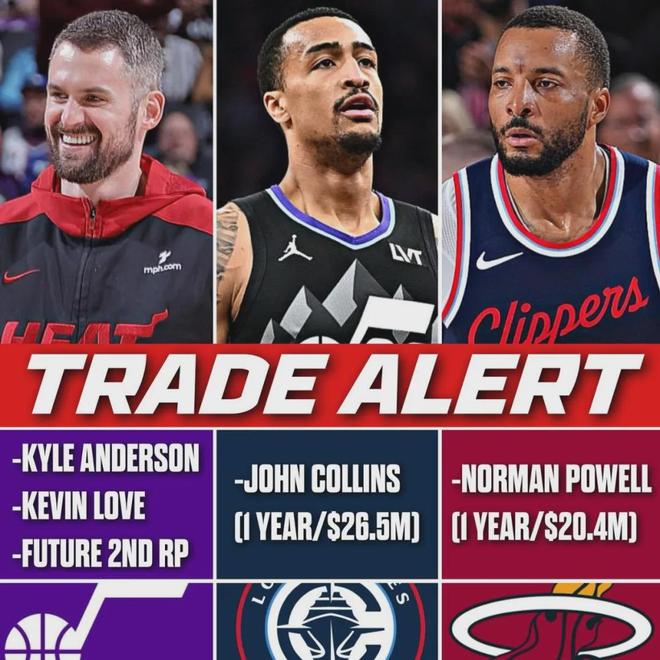 今年夏天,快船、热火、爵士达成三方交易:快船得到约翰-科林斯,热火得到鲍威尔,爵士得到乐福、李凯尔和2027年次轮签(来自快船)。快船相当于用鲍威尔+1个次轮签换来科林斯!鲍威尔表示,得知被快船交易,自己震惊了。