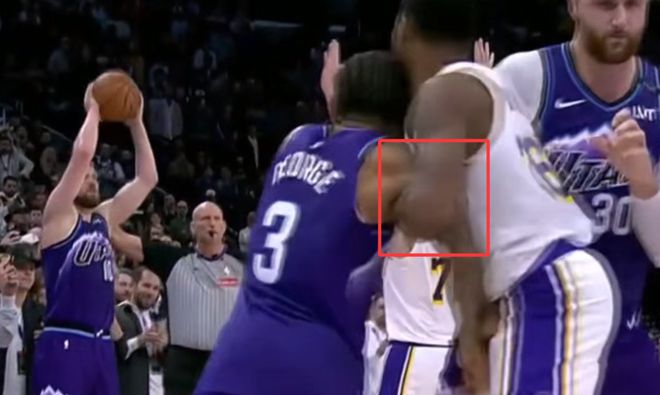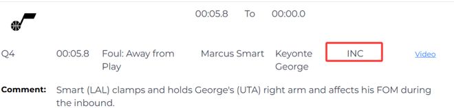 第二次漏判发生在距离比赛结束还有5.8秒,湖人球员斯马特在发球阶段夹住并按住爵士球员乔治的右臂,干扰其接球动作,并导致他摔倒。这是一次漏吹的防守犯规,同样是湖人获利,爵士吃亏。