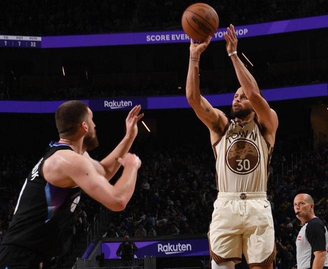 第三,库里成为NBA历史上出场时间少于30分钟且得分超过30分的场次最多的球员。