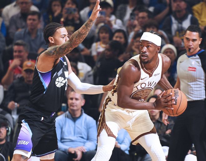 北京时间11月25日,NBA常规赛继续进行,勇士主场对阵爵士。勇士最近情况不太妙,开赛以来战绩9胜9负,已经被西部前七名拉开差距,最近一波三连败,更是让球队更衣室暗流涌动。库明加受伤后,关于他又要成为交易筹码的新闻越来越多,关键作为球队二当家的巴特勒,终于坐不住了,直接挑战科尔,认为进攻端科尔应该有更丰富的体系,库里下场后应该增加单打战术,适合自己和库明加搭档;防守端巴特勒则说球队缺乏态度和意愿,谁都防不住,只依靠进攻不是夺冠之道。科尔也做出回应,认为防守没问题,二次防守做的不好。